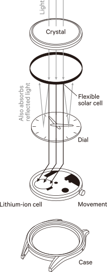 Citizen Eco-Drive -kellon tyylikkään ulkokuoren alle kätkeytyy hienostunutta teknologiaa. Vaikka perusidea on yksinkertainen, sen toteutus on vuosikymmenten kehitystyön tulos.