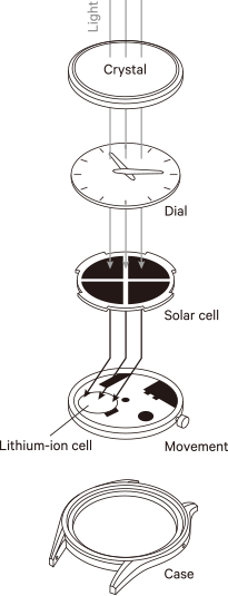 Kerätty valoenergia varastoidaan erityiseen ladattavaan akkuun (Titanium Lithium-Ion secondary battery). Kyseessä ei ole tavallinen paristo, vaan komponentti, joka on suunniteltu kestämään erittäin pitkään, jopa vuosikymmeniä, ilman merkittävää kapasiteetin heikkenemistä. Se on kellon oma pieni voimalaitos, joka vapauttaa virtaa tasaisesti ja luotettavasti.