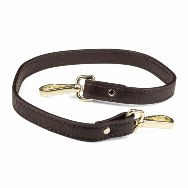 Aarni tummanruskea lyhyt olkahihna. Laadukkaasta kotimaisesta hirvennahasta valmistettu olkahihna kullan sävyisillä yksityiskohdilla. Nahkainen lyhyt olkahihna on täydellinen lisä Aarni olkalaukkuun. Hihnan pituus on kiinteä 58 cm.