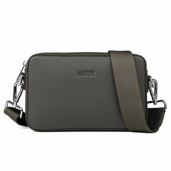 Kotimainen Aarni olkalaukku. Laukku on valmistettu kotimaisesta laadukkaasta hirvennahasta. Tämä laukku on täydellinen valinta jokapäiväiseen käyttöön. Laukussa kulkee mukana kaikki tarvittava. Siinä on on vetoketjusuljenta ja laukun sisältä löytyy neljä korttitaskua, avoin tasku sekä yksi vetoketjutasku. Laukku on tyylikkään oliivin sävyinen. Olkalaukun vetoketju on hopean sävyinen. Laukussa on säädettävä olkahihna, joka mahdollistaa laukun kantamisen usealla eri tyylillä. Aarni olkalaukku toimitetaan suojaavassa säilytyspussissa joka on paketoitu tyylikkääseen lahjakoteloon. Olkalaukku on RFID-suojattu eli etälukusuojattu, mikä estää korttiesi luvattoman skannaamisen. Laukun leveys on 21 cm ja korkeus 13 cm.