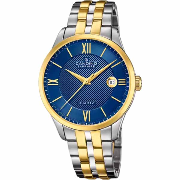 Candinon miesten kello sinisellä kellotaululla. 41 millimetriä leveässä kellossa on safiirilasi, joka suojaa kellotaulua erinomaisesti naarmuuntumista vastaan. Kellotaulussa on viivaindeksit poislukien kello 3, 6, 9 ja 12, jotka ovat roomalaisilla numerolla. Kellossa on päivyri kello 3 kohdalla. Kellon runko ja kaksivärinen ranneke ovat valmistettu ruostumattomasta teräksestä. Kellossa on laadukas ja tarkka sveitsiläinen Ronda 515 -kvartsikoneisto. Kello on vesitiivis 100 metriin asti eli se kestää hyvin uimista, mutta laitesukellukseen se ei sovellu.