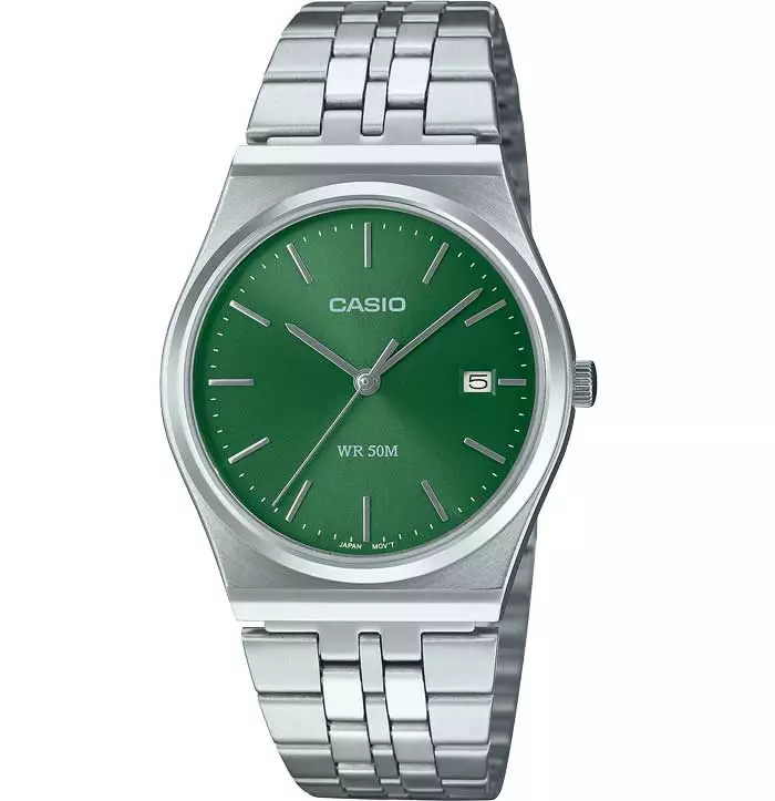 Casio MTP-B145D-3AVEF on nostalginen paluu 1980-luvulle. Tämä malli on täydellinen valinta retrotyylin ystäville, jotka arvostavat minimalistista muotoilua ja klassista estetiikkaa. Kellossa on upea vihreä kellotaulu, joka on pelkistetyn tyylikäs ja josta ajan lukeminen on vaivatonta. Teräksinen runko ja ranneke luovat laadukkaan tuntuman.