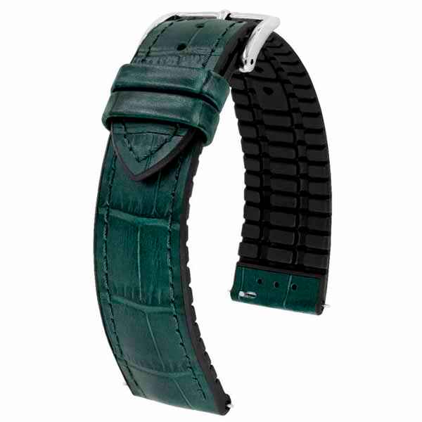 Ranneke on laadukasta vasikan nahkaa, pinnassa alligaattorikuviointi. Ranneke kestää hyvin käyttöä ja rannekkeen alapinta on HIRSCH Premium Caoutchouc core uritettua materiaalia, joka sopii moneen menoon. Tämän avulla kosteus siirtyy rannekkeen alta helposti. Rannekkeen alapinta on musta.