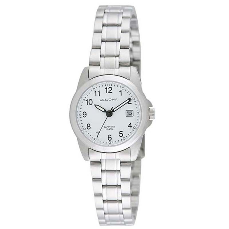 Leijona naisten klassinen rannekello, jossa on 27 mm valkoinen kellotaulu safiirilasilla. Kello on vesitiivis 100 metriin saakka sekä Leijona kelloille myönnetään kahden vuoden takuu!