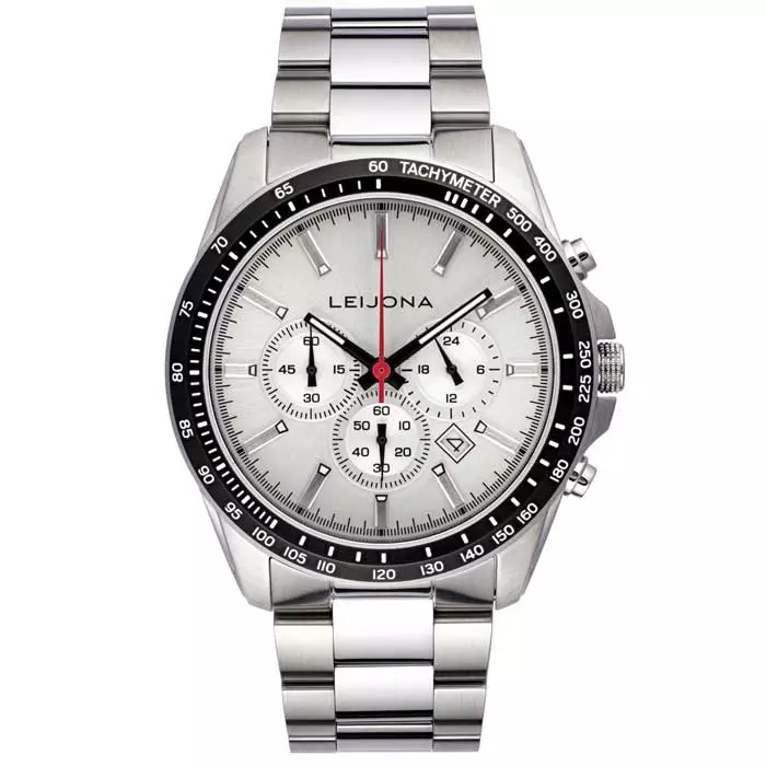 Leijona Harju Silverline on vakuuttava miesten kello, jossa yhdistyvät maskuliininen muotoilu ja erinomaiset ominaisuudet. Kellon 42 mm leveä runko ja ranneke on valmistettu kestävästä ruostumattomasta teräksestä. Kellon ilme on yhtenäisen teräksinen ja tyylikäs, ja sen hopeanhohtoinen kellotaulu luo arvokkaan vaikutelman. Kellotaulua kiertää takymetriasteikko, joka korostaa kellon sporttista luonnetta.