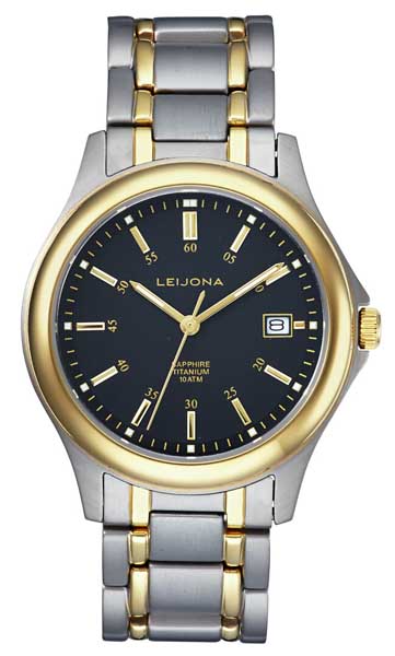 Miesten kaksivärinen titaanirannekello tyylikkäällä mustalla taululla. Kello on uintitiivis ja siinä on kestävä safiirilasi. Kellossa on myös käytännöllinen päivämääränäyttö.