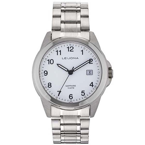 Miesten Leijona rannekello, jossa on 38 mm valkoinen kellotaulu sekä päivyri kello kolmen kohdalla. Kello on vesitiivis 100 metriin saakka. Kellolle myönnetään 2 vuoden takuu!