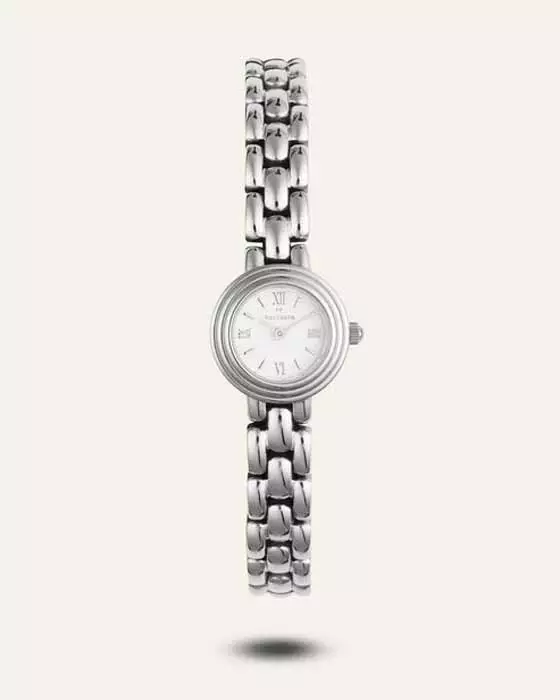 Mockberg Antique Watch MB0182 on herkkä, vintage-henkinen kello, joka on suunniteltu korostamaan naisellista eleganssia. Sen siro, halkaisijaltaan vain 19 mm oleva pyöreä ja teräksenvärinen runko on valmistettu ruostumattomasta teräksestä. Kaunis valkoinen kellotaulu roomalaisilla numeroilla yhdistyy klassiseen, teräksenväriseen rannekkeeseen luoden kokonaisuuden, joka tarjoaa sekä kestävyyttä että hienostuneisuutta. Luotettava Miyota-kvartsikoneisto takaa tarkan ajan.