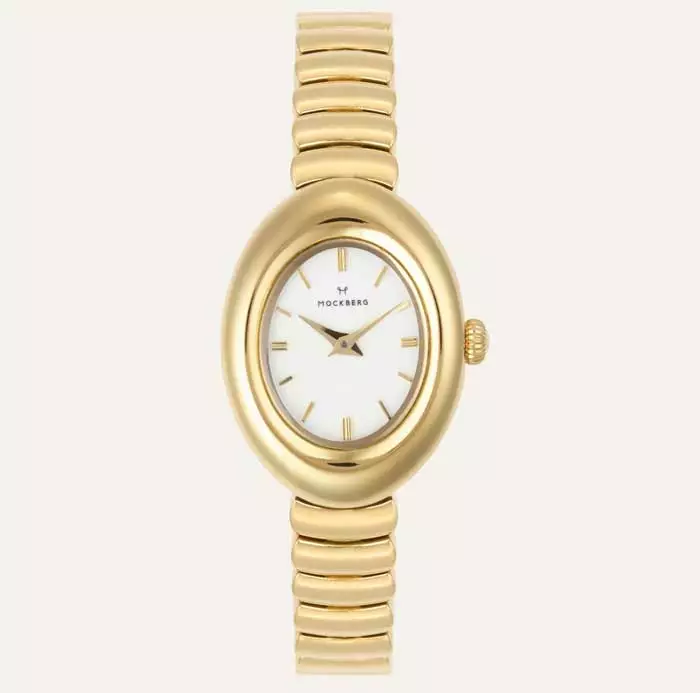 Mockberg Belle Oval -kellossa on pehmeästi pyöristetty ja elegantti ovaalinmuotoinen runko, joka yhdistyy saumattomasti kaarevasti muotoiltuun linkkirannekkeeseen. Tämä kello on hienostunut ja samalla helppokäyttöinen asuste, joka sopii tilanteeseen kuin tilanteeseen. Klassinen valkoinen kellotaulu, kullanvärinen runko ja luotettava japanilainen koneisto tekevät siitä ajattoman ja varman valinnan.