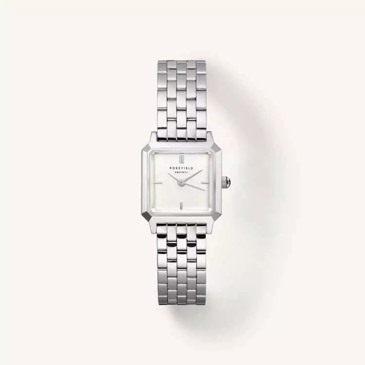 Rosefield Boxelle on moderni ja korumainen kello, jossa on erittäin siro, vain 19,5 mm leveä neliönmuotoinen runko. Kellon minimalistinen ilme syntyy hopeanvärisestä messinkirungosta ja raikkaasta, mattapintaisesta valkoisesta kellotaulusta. Kokonaisuuden viimeistelee elegantti, hopeoitu ruostumattomasta teräksestä valmistettu ranneke. Boxelle on täydellinen asuste, joka tuo hienostunutta tyyliä ranteeseen.