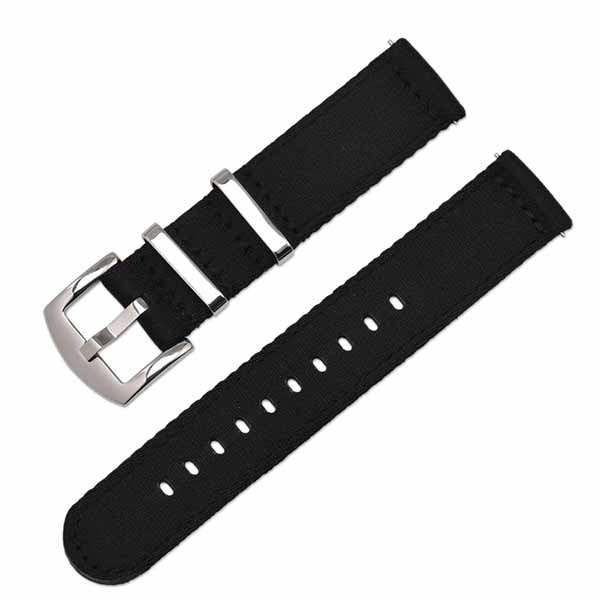 Musta kangasranneke kestävillä teräksisillä rannekelenkeillä. Tukevan rannekken paksuus on noin 3 mm. Ranneke on valmistettu kestävästä tekstiilistä, ja sen pinnan tuntuma on miellyttävän sileä. Kangasranneke on kevyt ja se hylkii likaa ja hikeä. Rannekkeen solki materiaaliltaan ruostumatonta terästä ja se on hopean sävyinen. Rannekkeen leveys on valittavissa, joko 18 mm, 20 mm tai 22 mm. Rannekkeen kokonaispituus on 205 mm. Rannekkeessa on pikakiinnitys eli se on helppo vaihtaa kelloon ilman työkaluja.