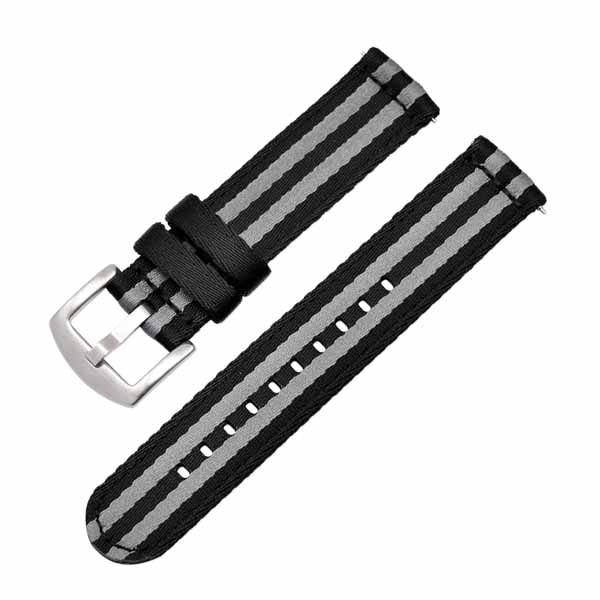 Musta-harmaa kangasranneke kankaisilla rannekelenkeillä. Tukevan rannekken paksuus on noin 3 mm. Ranneke on valmistettu kestävästä tekstiilistä, ja sen pinnan tuntuma on miellyttävän sileä. Kangasranneke on kevyt ja se hylkii likaa ja hikeä. Rannekkeen solki materiaaliltaan ruostumatonta terästä ja se on hopean sävyinen. Rannekkeen leveys on valittavissa, joko 18 mm, 20 mm tai 22 mm. Rannekkeen kokonaispituus on 205 mm. Rannekkeessa on pikakiinnitys eli se on helppo vaihtaa kelloon ilman työkaluja.