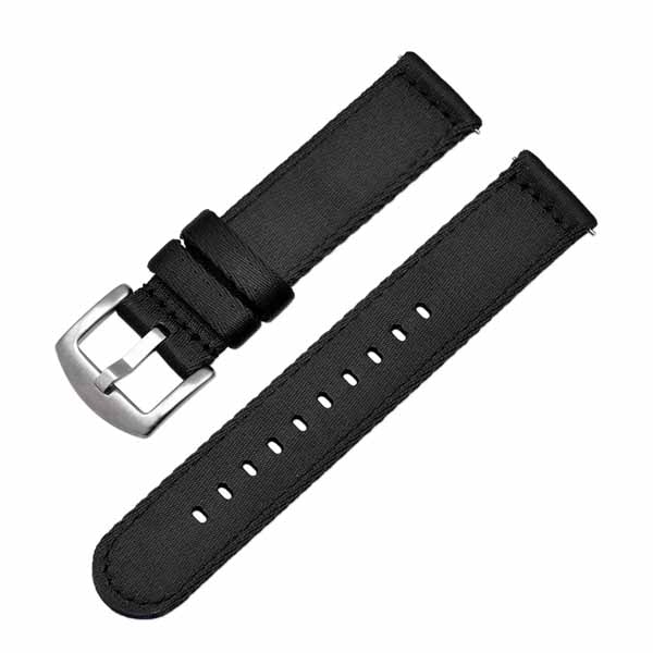 Musta kangasranneke kankaisilla rannekelenkeillä. Tukevan rannekken paksuus on noin 3 mm. Ranneke on valmistettu kestävästä tekstiilistä, ja sen pinnan tuntuma on miellyttävän sileä. Kangasranneke on kevyt ja se hylkii likaa ja hikeä. Rannekkeen solki materiaaliltaan ruostumatonta terästä ja se on hopean sävyinen. Rannekkeen leveys on valittavissa, joko 18 mm, 20 mm tai 22 mm. Rannekkeen kokonaispituus on 205 mm. Rannekkeessa on pikakiinnitys eli se on helppo vaihtaa kelloon ilman työkaluja.