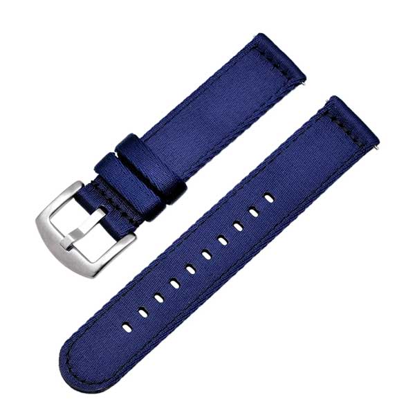Sininen kangasranneke kankaisilla rannekelenkeillä. Tukevan rannekken paksuus on noin 3 mm. Ranneke on valmistettu kestävästä tekstiilistä, ja sen pinnan tuntuma on miellyttävän sileä. Kangasranneke on kevyt ja se hylkii likaa ja hikeä. Rannekkeen solki materiaaliltaan ruostumatonta terästä ja se on hopean sävyinen. Rannekkeen leveys on valittavissa, joko 18 mm, 20 mm tai 22 mm. Rannekkeen kokonaispituus on 205 mm. Rannekkeessa on pikakiinnitys eli se on helppo vaihtaa kelloon ilman työkaluja.