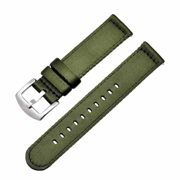 Vihreä kangasranneke kankaisilla rannekelenkeillä. Tukevan rannekken paksuus on noin 3 mm. Ranneke on valmistettu kestävästä tekstiilistä, ja sen pinnan tuntuma on miellyttävän sileä. Kangasranneke on kevyt ja se hylkii likaa ja hikeä. Rannekkeen solki materiaaliltaan ruostumatonta terästä ja se on hopean sävyinen. Rannekkeen leveys on valittavissa, joko 18 mm, 20 mm tai 22 mm. Rannekkeen kokonaispituus on 205 mm. Rannekkeessa on pikakiinnitys eli se on helppo vaihtaa kelloon ilman työkaluja.