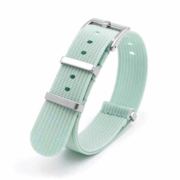 Mintun sävyinen nato-ranneke tukevilla ruostumattomasta teräksestä valmistetuilla rannekelenkeillä. Ranneke on paksuudeltaan noin 1,5 mm ja se on valmistettu kestävästä nailonista. Nylonranneke on kevyt ja se hylkii likaa ja hikeä. Rannekkeen terässolki on hopean sävyinen. Rannekkeen leveys on valittavissa, joko 18 mm, 20 mm tai 22 mm. Rannekkeen kokonaispituus on noin 270 mm. Ranneke on helppo vaihtaa, se vain pujotetaan kellon jousinastojen välistä paikoilleen.