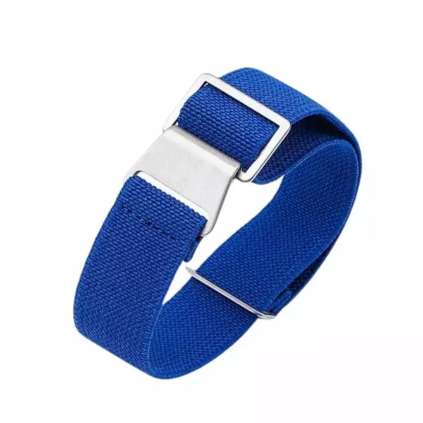 Sininen joustava nato-ranneke. Ranneke on paksuudeltaan noin 1,5 mm ja se on valmistettu kestävästä ja venyvästä nailonista. Rannekkeen terässolki on hopean sävyinen. Rannekkeen leveys on valittavissa, joko 18 mm, 20 mm tai 22 mm. Ranneke sopii myös hyvin isoille ranteille. Säädettävä ranneke sopii ranteille, joiden ympärysmitta on alkaen noin 17 cm. Pienimpään mahdolliseen ympärysmittaan vaikuttaa myös kellon halkaisija. Nylonranneke on kevyt ja se hylkii likaa ja hikeä.