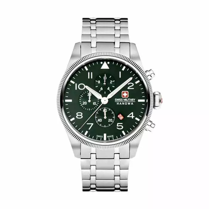 Swiss Military Hanowa Thunderbolt Chrono tekee näyttävän vaikutuksen tällä persoonallisella, metsänvihreällä kellotaululla. Tarkkojen navigointi-instrumenttien innoittama kellotaulu on suunniteltu tinkimätöntä selkeyttä varten, ja sen pikkutaulut sekä luminoidut osoittimet on helppo lukea yhdellä silmäyksellä. Kellon vankka 43 mm teräsrunko, ajanoton painikkeet ja jykevä teräsranneke muodostavat kestävän ja luotettavan kokonaisuuden. Naarmuuntumaton safiirilasi suojaa kellotaulua, ja sveitsiläinen Ronda-kronografikoneisto varmistaa sen tarkan toiminnan. Tämä kello on rohkea valinta, jossa yhdistyvät tekninen suorituskyky ja moderni estetiikka.