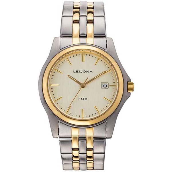 Klassinen miesten rannekello teräsrannekkeella. Rannekellossa on 38 mm leveä kultainen kellotaulu, sekä selkeälukuinen päivyri kello kolmen kohdalla. Kello on vesitiivis 50 metriin saakka!