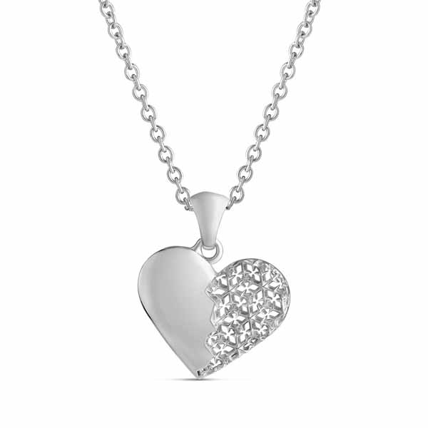 Naisten hopeinen kaulakoru sydämen muotoisella riipuksella. Sydänriipus on puoliksi koristeltu lumihiutale-kuvioinnilla. Riipuksen koko on 16 x 14 mm. Sydänkaulakoru on valmistettu laadukkaasta 925 sterling-hopeasta. Hopeaketju on kätevästi säädettävissä pituuksiin 45 cm ja 50 cm.