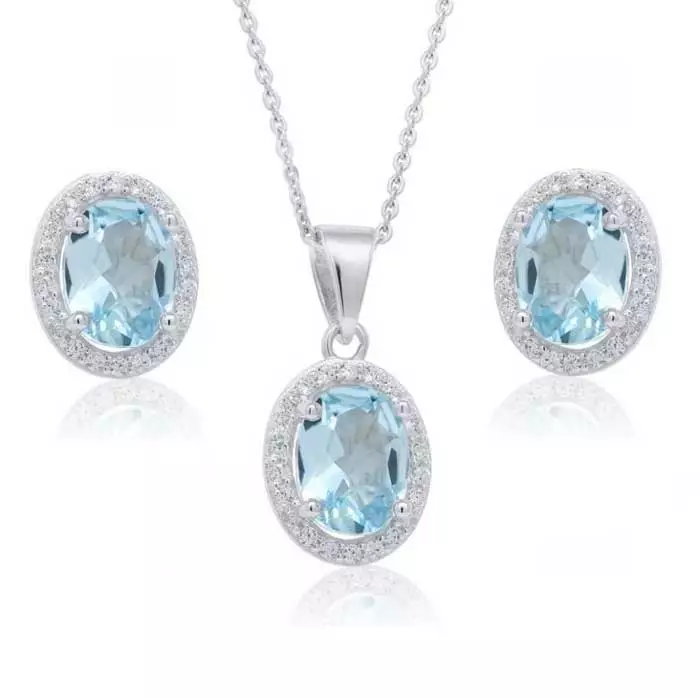 Kaunis hopeakorusetti topaaseilla ja kirkkailla zirkonia-korukivillä. Korusetin materiaali on laadukas nikkelitön 925 sterling-hopea.