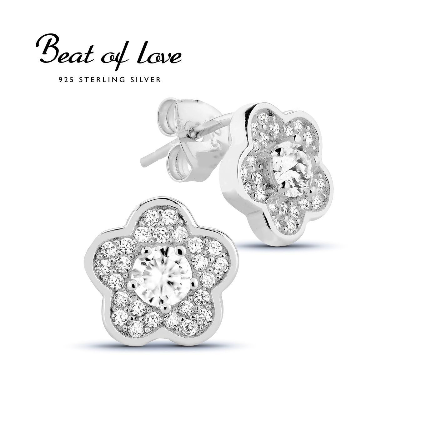 Beat of Love kukka hopeakorvakorut zirkoneilla