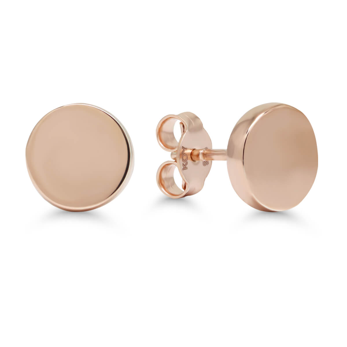 Trendikkäät ruusukullatut nappikorvakorut pyöreillä ruusukullatuilla laatoilla. Korvakorun koko on 7,5 mm. Nämä korvakorut on valmistettu laadukkaasta 925 hopeasta.