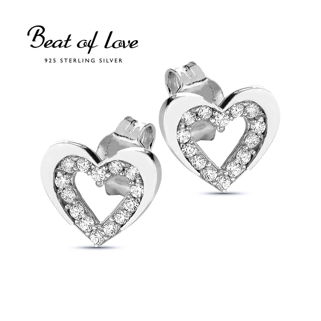 Beat of Love avosydän korvakorut zirkoneilla -925 sterlinghopeaa, rodinoitu -Synteettiset zirkonit yht. 28 kpl -Koruosan koko 10 mm