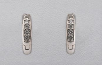 Kauniit valkokultatimanttienkaat kahdeksalla timantilla per korvakoru.