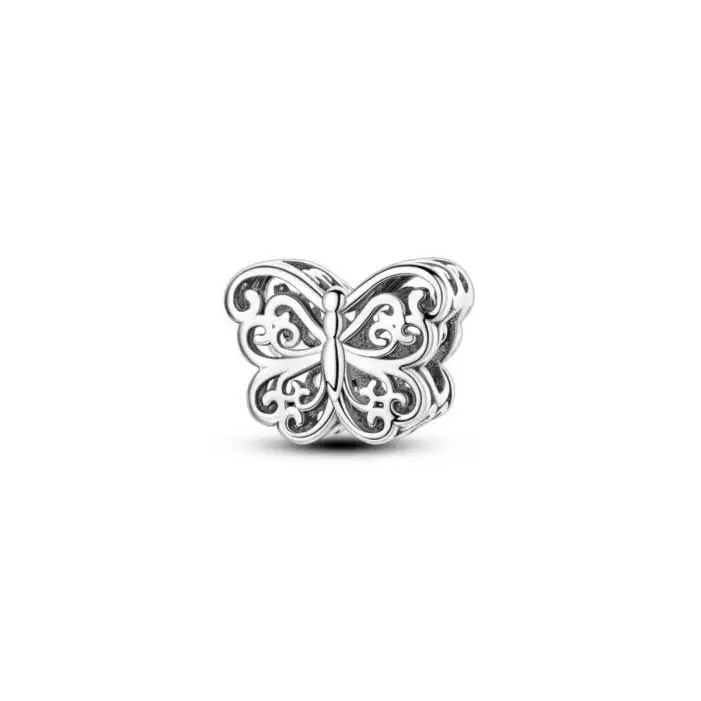 Tuo rannekoruusi luonnon kauneutta ja keveyttä tällä perhosenmuotoisella Charmiella-hopeahelalla. Perhosen siipiä koristaa taidokas, pitsimäinen filigraanikuviointi, joka tekee helasta ilmavan ja kauniin yksityiskohtaisen. Tämä ketjuun pujotettava hela on valmistettu aidosta 925 sterling-hopeasta. Helan leveys on 13 mm, korkeus 10 mm ja syvyys 9,5 mm.