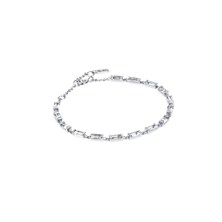 Naisten hopeinen rannekoru kirkkailla kristallikvartsi-kivillä. Hopeaketjun pituus on kätevästi säädettävissä pituuksiin 16 cm, 17,5 cm ja 19 cm. Valmistusmateriaali on laadukas nikkelitön 925 sterling-hopea. Tämä upea hopearannekoru viimeistelee juhlatyylin tai säkenöi arjessa mukana!