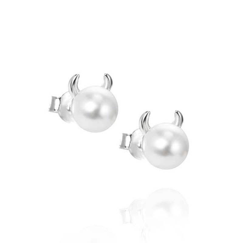 Efva Attling Little Devil tuoteperheen hopeiset korvakorut. Korvakoruissa on makeanveden helmi, jolla on pienet hopeiset pirunsarvet. Meissä kaikissa asuu pieni paholainen, joka näyttää oikealla hetkellä sarvensa, joten nämä korvakorut ovat siihen täydelliset. Korvakorut ovat tappikiinnityksellä. Sirot piru korut.