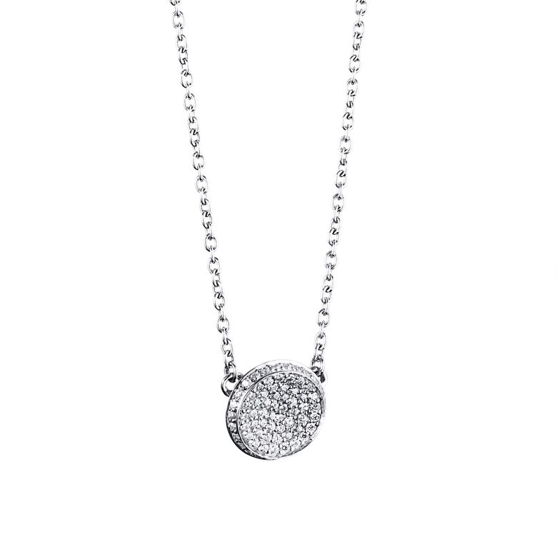 Näyttävä 18 karaatin valkokultainen Love Bowl timanttiriipus, jossa on timantteja yhteensä 0,37 ct. Koruosan halkaisija on 11 mm ja ketjun pituus on valittavissa 40 tai 42/45 cm.