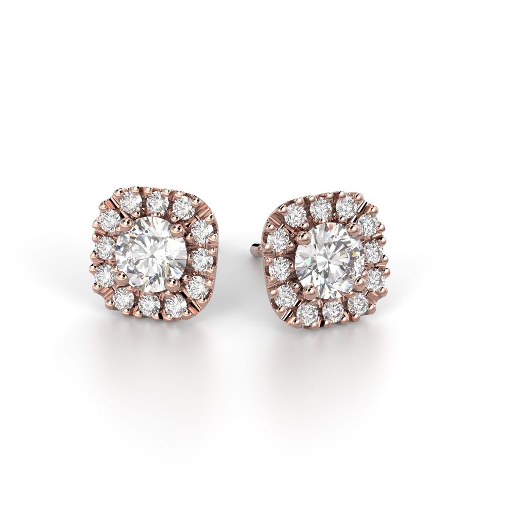 Näyttävät Josefiina timanttikorvakorut, joiden keskellä hehkuu upea briljanttihiottu timantti sekä pienemmät timantit.