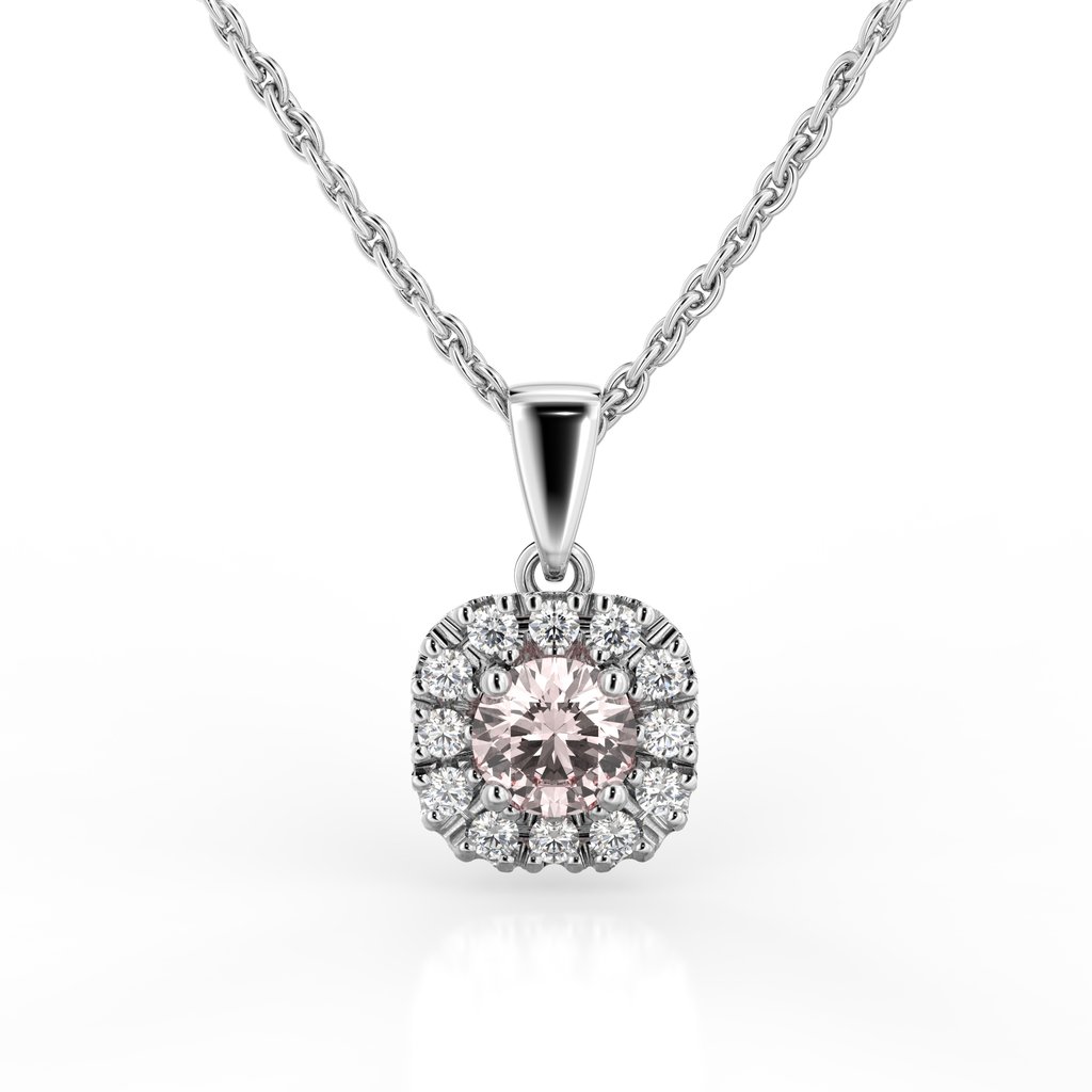 Kaunis Festive Josefiina riipus jonka keskellä upea vaaleanpunainen morganiitti ympärillään pienemmät timantit. (Huomioithan että riipus ei sisällä ketjua.)