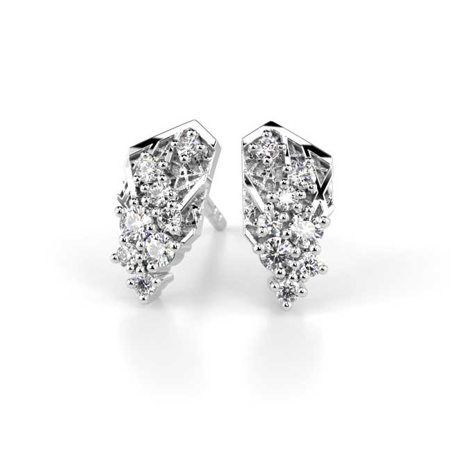 Festive Routa Rakka timanttikorvakorut. Särmikkäisiin korvakoruihin on istutettu yhteensä 16 säihkyvää timanttia, joiden yhteispaino on 0,21 ct. Kummassakin korvakorussa säihkyy kahdeksan erikokoista timanttia. Korvakoruissa on kaunis ja kiinnostava pintakuviointi, joka on saanut inspiraation talvisesta luonnosta. Rakka -korvakorut on valmistettu valkokullasta ja kullan pitoisuus on valittavissa. Korvakoruja on saatavilla 9k, 14k ja 18 karaatin valkokullasta valmistettuna. Korvakoru on 4,9 mm leveä ja 10,5 mm korkea. Yhteensopiva niin Routa Rakka- sormuksien kuin -riipuksienkin kanssa!