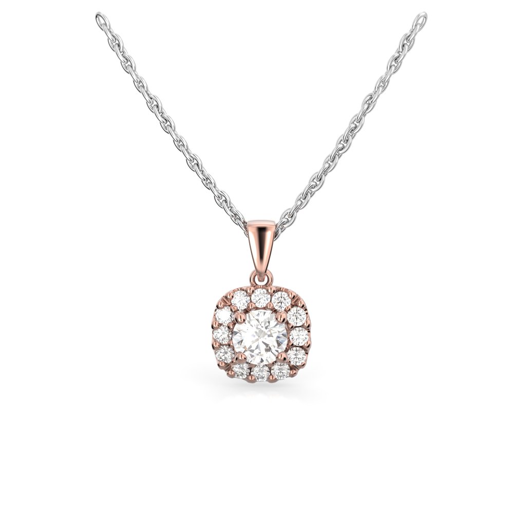 Tyylikäs Festive Janette-riipus, jonka keskipisteenä säihkyy kaunis briljanttihiottu timantti. Pyöristettyä neliökehystä ympäröi 12 säkenöivää timanttia.