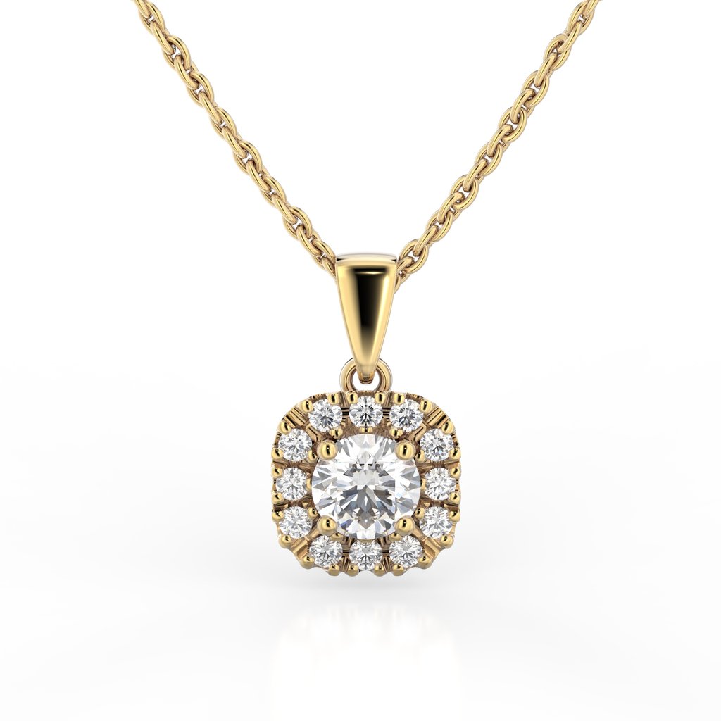 Tyylikäs Festive timanttiriipus, jonka keskipisteenä säihkyy kaunis briljanttihiottu timantti. Pyöristettyä neliökehystä ympäröi säkenöivät timantit.