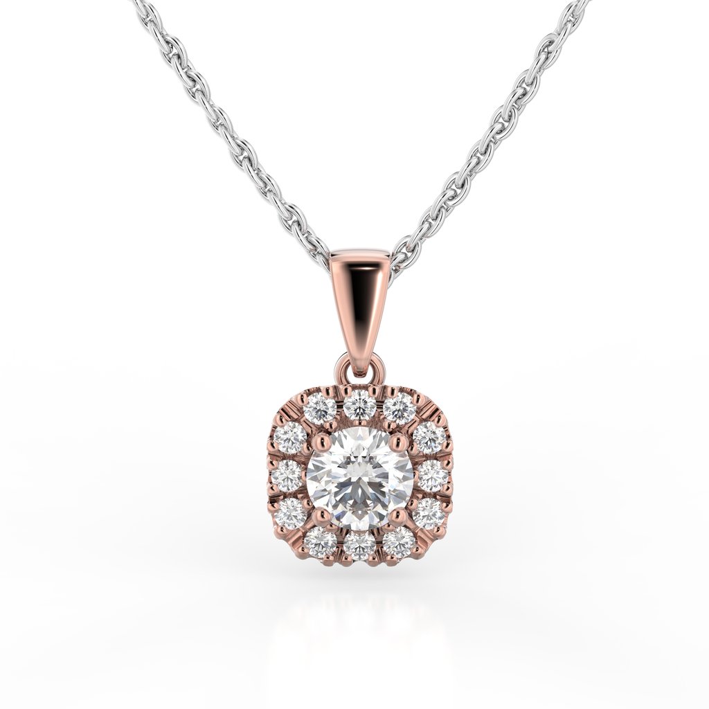 Tyylikäs Festive timanttiriipus, jonka keskipisteenä säihkyy kaunis briljanttihiottu timantti. Pyöristettyä neliökehystä ympäröi säkenöivät timantit.