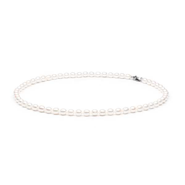 Naisten aito helminauha, jota koristavat valkoiset makeanveden helmet. Kaulakorua saa kahdessa eri pituudessa 40 cm tai 45 cm. Helminauhassa on kestävä hopeinen lukko. Yksittäisen, hieman ovaalin muotoisen, makeanveden viljellyn helmen koko on noin 6-6,5 mm. Gaura Pearls helminauha on erinomainen lahjaidea lapselle kastelahjaksi sekä nuorelle esimerkiksi rippi- tai valmistujaislahjaksi. Upea helmirannekoru aidoilla makeanveden viljellyillä helmillä!