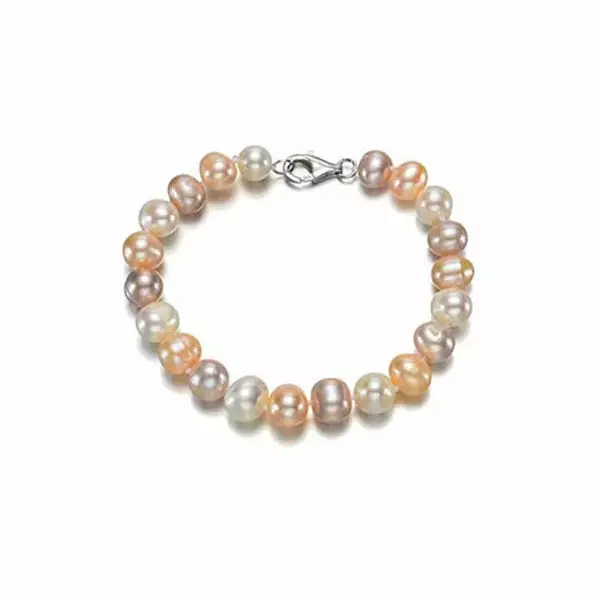 Hopeinen helmirannekoru aidoilla makeanveden viljellyillä värikkäillä helmillä. Makeanveden helmet ovat kooltaan noin 9 mm. Helmiranteen pituus on 19 cm. Papukaijalukon materiaali on laadukas nikkelitön 925 sterling hopea. Klassisen kaunis helminauha on ihana täydennys jokaisen korukokoelmaan!