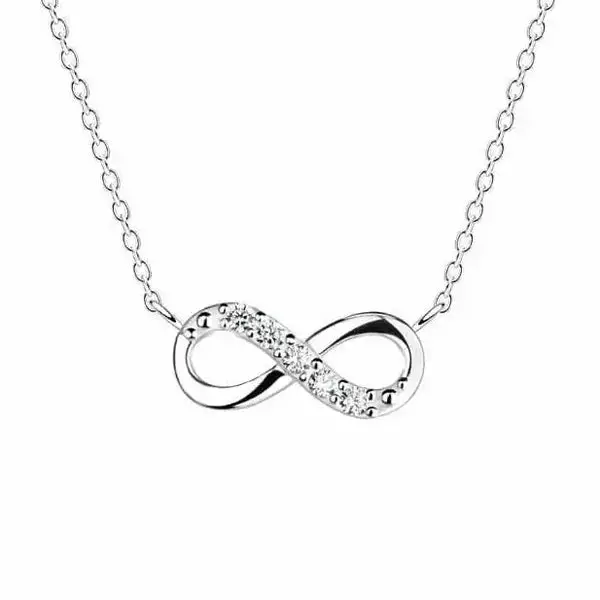 Hopeinen riipus Infinity Naisten hopeinen kaulakoru ikuisuutta kuvaavalla äärettömyys-symbolilla. Hopeariipusta koristavat kirkkaana säkenöivät zirkonia-korukivet. Hopeariipuksen koko on mm.... Lue lisää