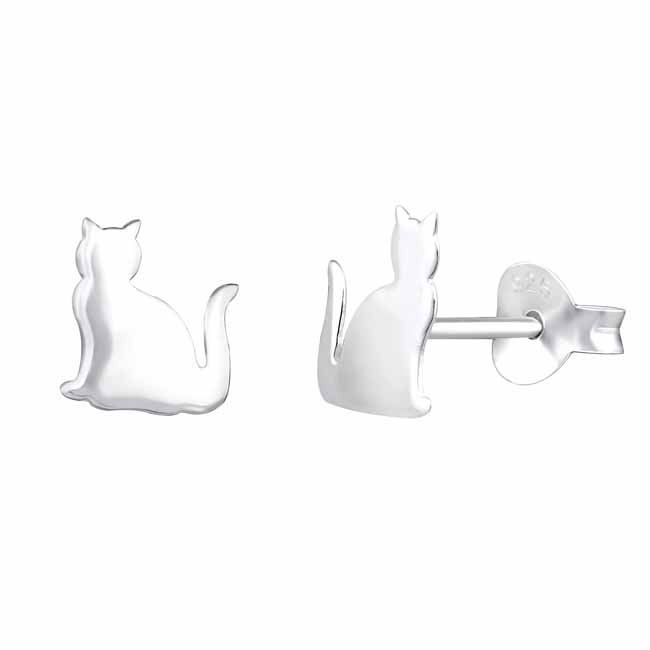 Lasten hopeiset kissa-korvakorut. Suloiset lasten hopeiset korvakorut siluetilla istuvasta kissasta. Korvakoruissa on luotettava tappikiinnitys. Korvakorujen koko on 6 x 8 mm. Sirot ja kevyet nappikorvakorut, joita lapsi voi käyttää arjessa! Korvakorujen valmistusmateriaali on laadukas nikkelitön 925 sterling hopea.