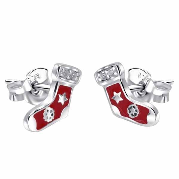 Lasten hopeiset joulusukka-korvakorut. Suloiset jouluiset korvakorut punaisella sukalla, jota koristavat kirkkaat zirkonia-korukivet. Sopivat kaikille joulumielisille!
