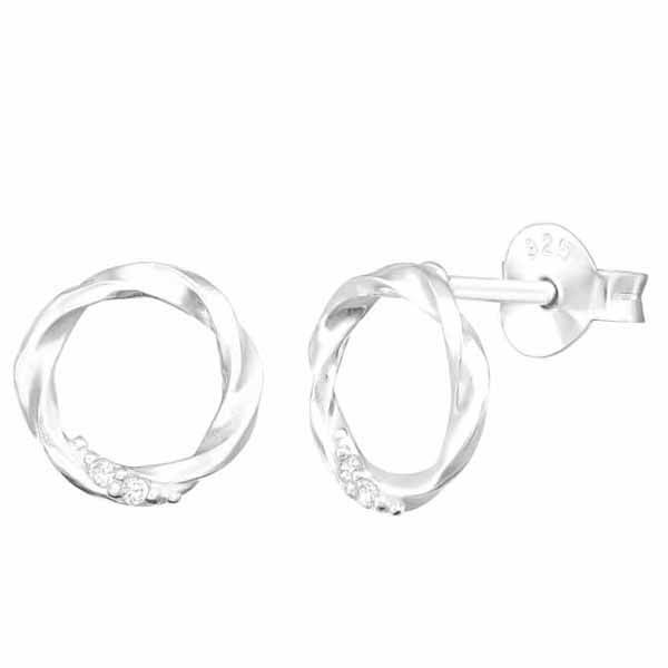 Hopeiset pyöreät kehä-korvakorut kierrekuviolla. Tyylikkäät ja pelkistetyt hopeakorvakorut kirkkailla korukivillä koristeltuina. Korvakoruissa on luotettava tappikiinnitys. Korvakorujen koko on 8 mm. Sirot ja kevyet nappikorvakorut, joita voi käyttää arjessa! Korvakorujen valmistusmateriaali on laadukas nikkelitön 925 sterling hopea.