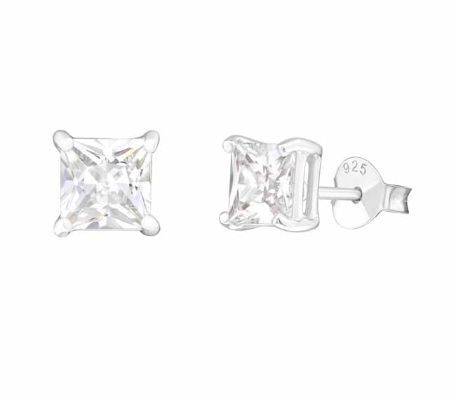 Hopeiset korvakorut kirkkaalla korukivellä. Näissä tappikorvakoruissa säihkyvät neliön muotoiset kirkkaat zirkonit. Korvakoruissa on luotettava tappikiinnitys. Korvakorujen koko on 5 x 5 mm. Sirot ja kevyet nappikorvakorut, joita voi käyttää arjessa! Korvakorujen valmistusmateriaali on laadukas nikkelitön 925 sterling hopea.