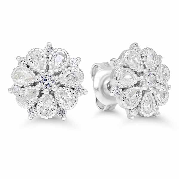 Kukan muotoiset hopeiset korvakorut kirkkailla zirkonia-korukivillä. Korvakoruissa on tukeva tappikiinnitys. Valmistusmateriaali on laadukas nikkelitön 925 sterling-hopea.