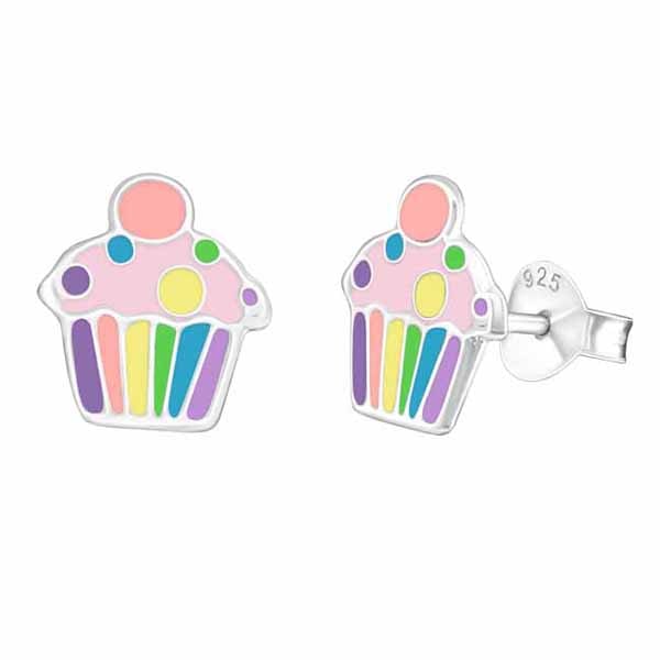Hopeakorvakorut värikäs kuppikakku Lasten hopeiset kuppikakku-korvakorut. Suloiset lasten hopeiset muffinssi-korvakorut. Muffini on sateenkaaren värinen. Korvakoruissa on luotettava tappikiinnitys.... Lue lisää