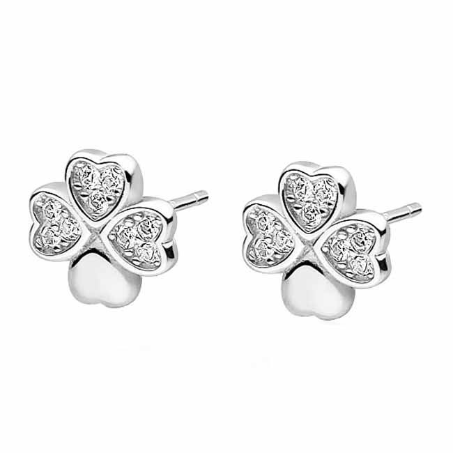 Hopeiset neliapila-korvakorut. Nämä kauniit neliapilakorvakorut sopivat niin lapselle kuin aikuisellekin! Korvakorut on koristeltu zirkoni-korukivin. Korvakoruissa on luotettava tappikiinnitys. Korvakorujen koko on 8 x 8 mm. Sirot ja kevyet nappikorvakorut, joita voi käyttää arjessa! Korvakorujen valmistusmateriaali on laadukas nikkelitön 925 sterling hopea.
