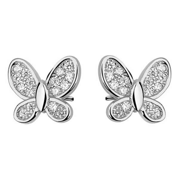 Lasten hopeiset perhonen-korvakorut. Kauniit perhoskorvakorut, joiden siipiä koristavat kirkkaat ja säihkyvät zirkonit. Korvakoruissa on luotettava tappikiinnitys. Korvakorujen koko on 8 x 8 mm. Sirot ja kevyet nappikorvakorut, joita lapsi voi käyttää arjessa! Korvakorujen valmistusmateriaali on laadukas nikkelitön 925 sterling hopea.